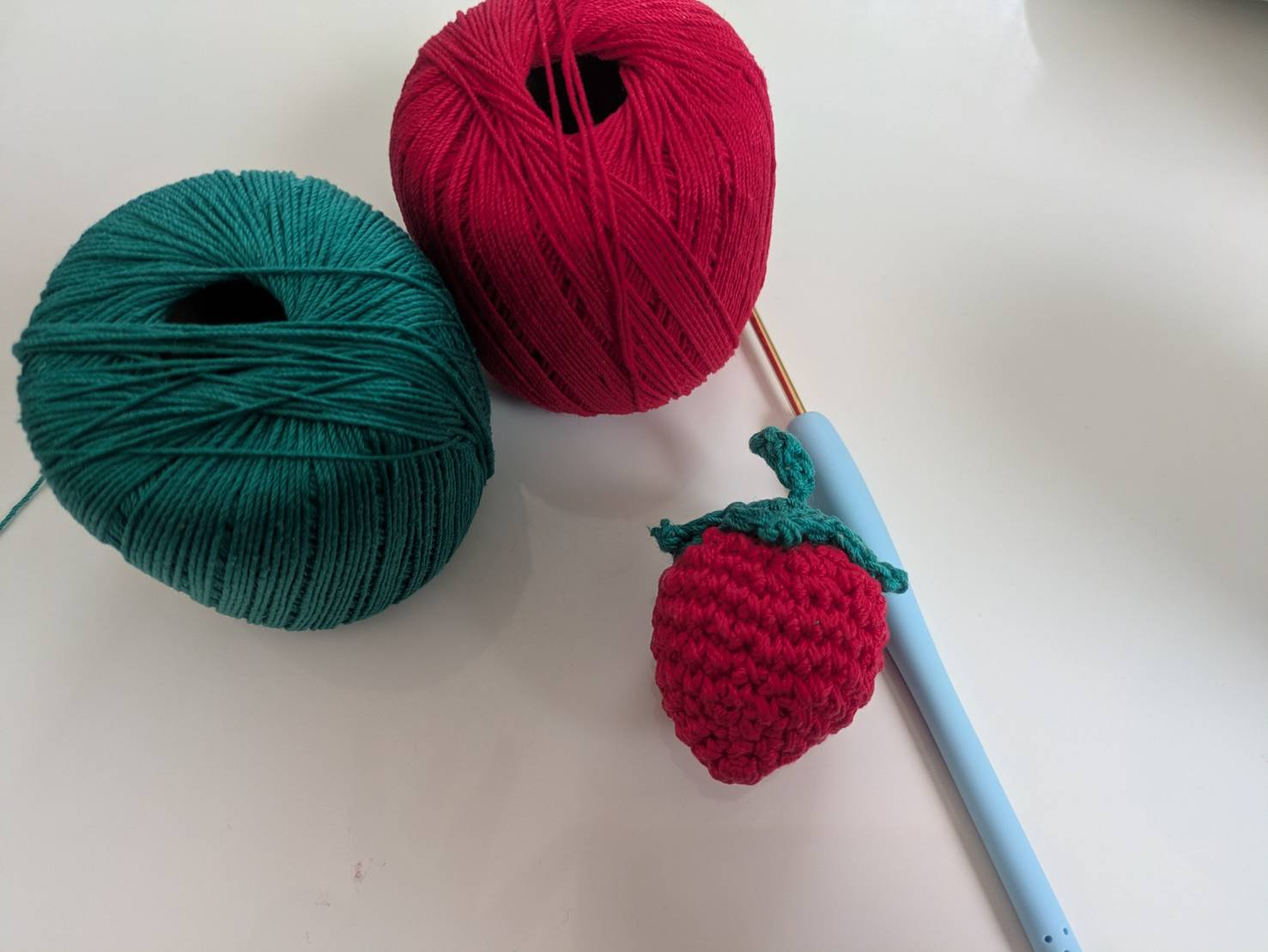 そんな私ですが、100均でいちご色の毛糸を見つけたのがきっかけで、あみぐるみに初挑戦してみました!