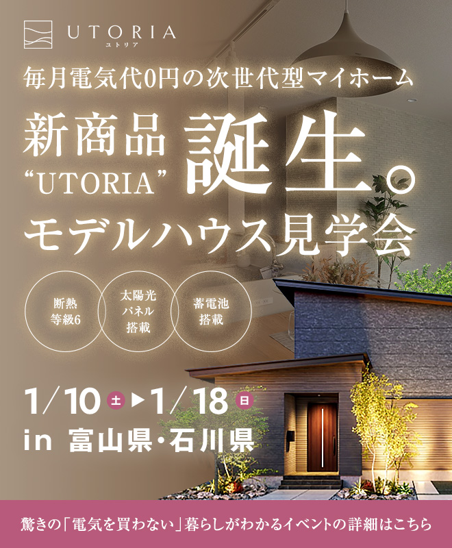 【新商品 誕生】毎月電気代0円の次世代型マイホーム”UTORIA(ユトリア)” モデルハウス見学会