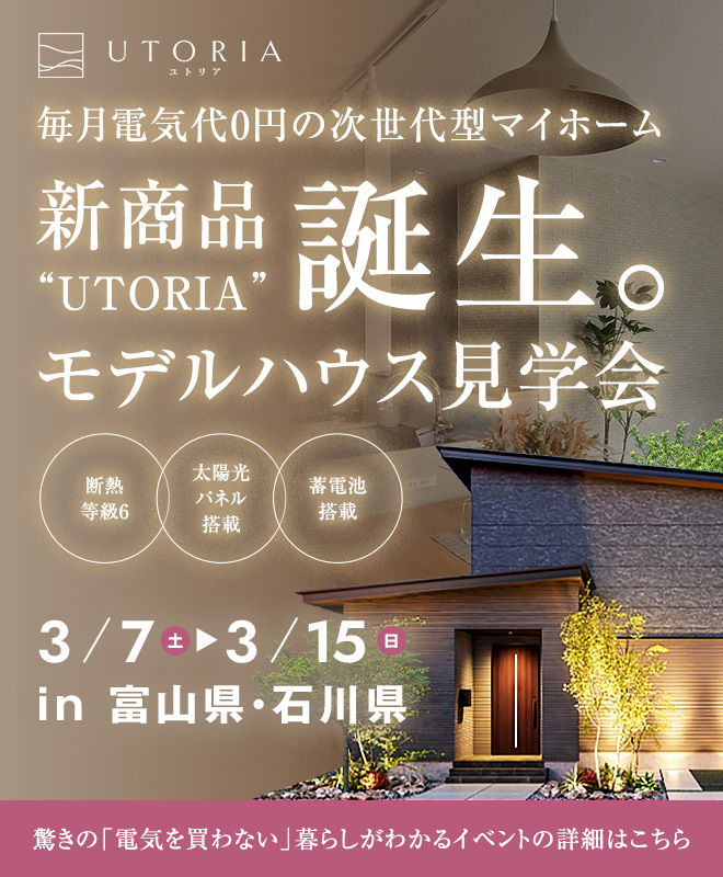 【新商品 誕生】毎月電気代0円の次世代型マイホーム”UTORIA(ユトリア)” モデルハウス見学会